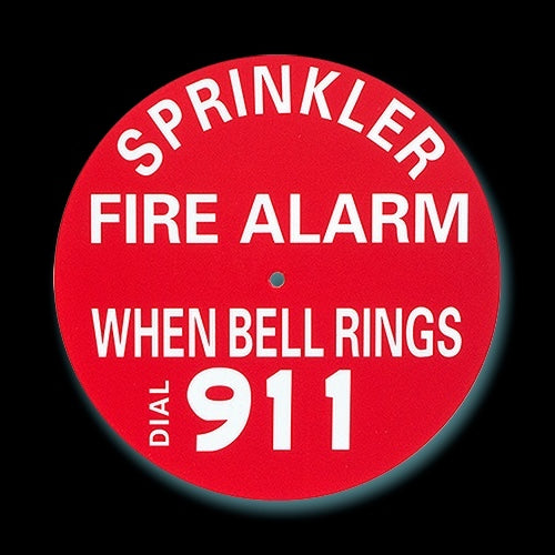 SPRINKLER ALARM SIGNS are made of plastic each circular sign has a predrilled mounting hole for easy installation over alarm bell.
